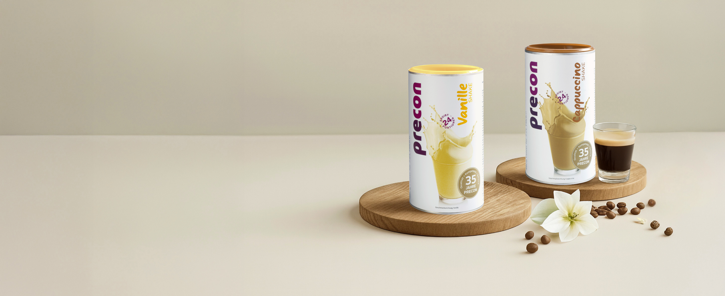 Seguro al objetivo: 1x Precon + 2 comidas a tu gusto. Después de 4–6 semanas disfrutas comidas completamente normales – y te mantienes en equilibrio.