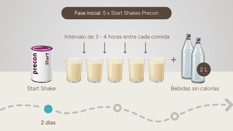 El Precon Start Shake te proporciona aproximadamente 900 kcal por día durante los dos primeros días de dieta y prepara tu cuerpo de manera óptima para la quema de grasa.