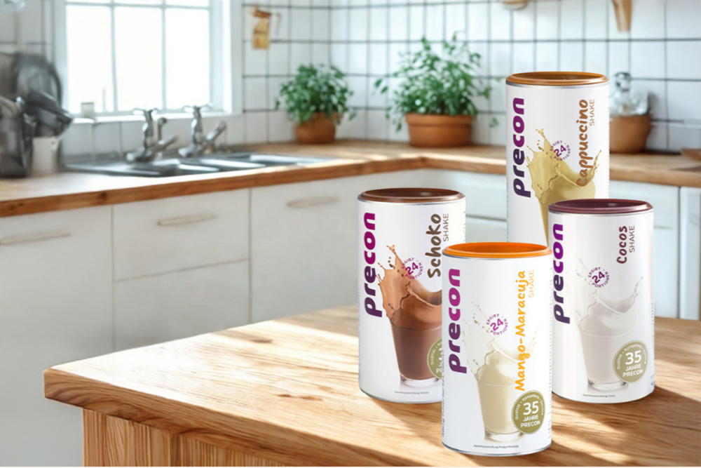 Nuestros maravillosos shakes son el corazón del concepto Precon: reemplazan una comida completa, te proporcionan proteínas de alta calidad, fibra, así como 23 vitaminas y minerales, y todo ello con menos de 220 kcal por porción.