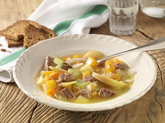 - Servir le ragoût dans une assiette avec une tranche de pain.