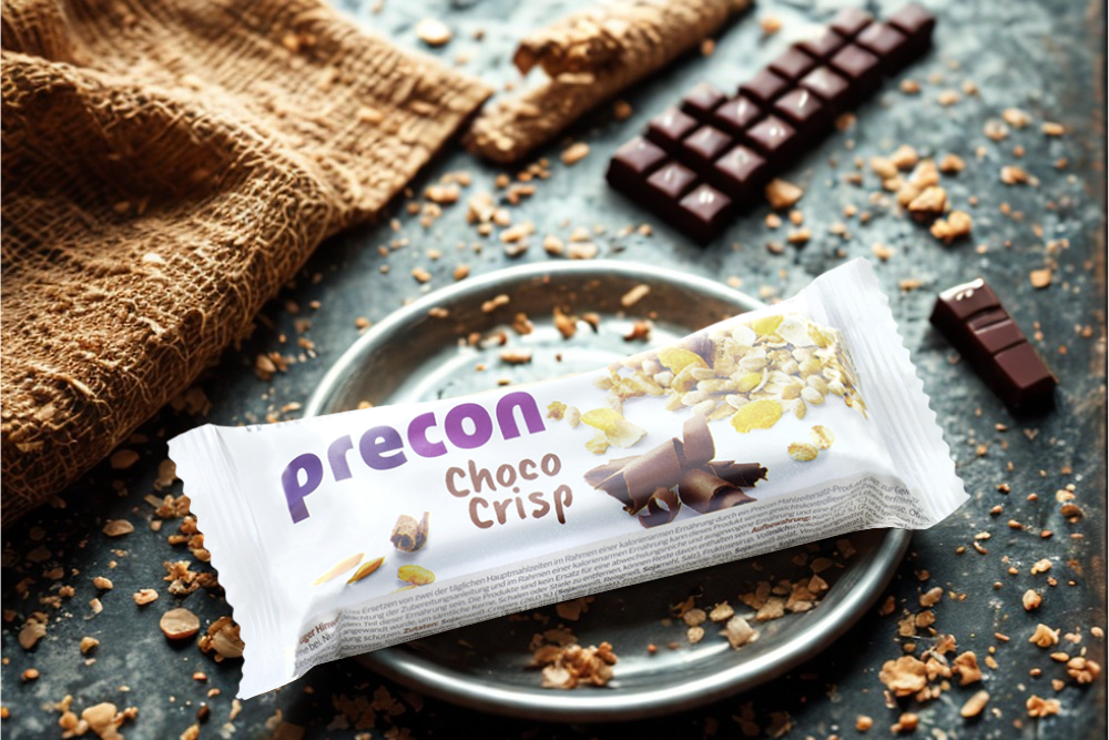 Onze lekkere Precon repen vervangen een volledige maaltijd, voorzien je van hoogwaardige eiwitten, vezels, evenals 23 vitamines en mineralen – en dat bij ca. 230 kcal per reep.